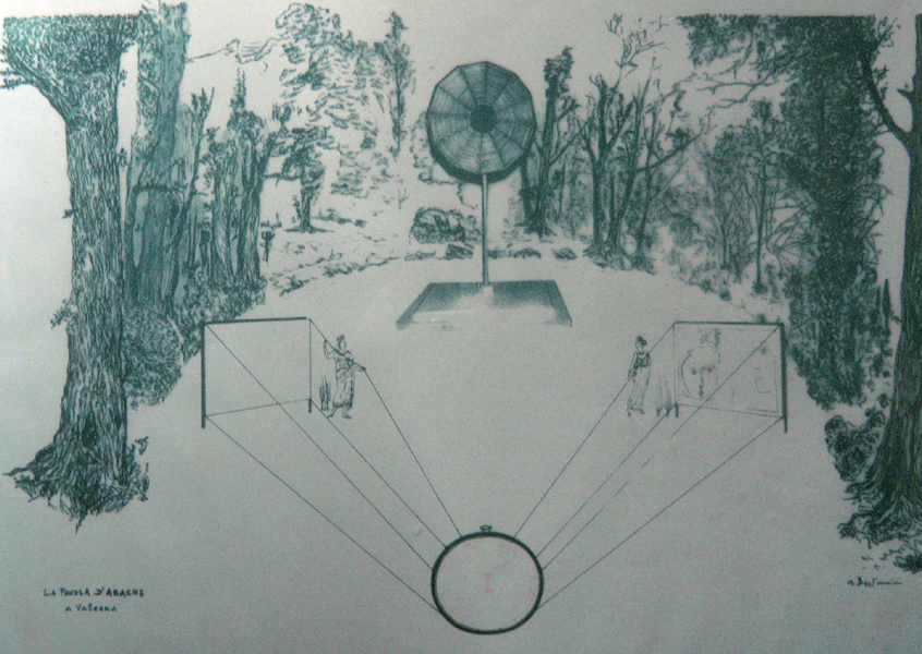 Mario Bertoncini: LA FAVOLA D'ARACNE (1999) project for a theatrical piece for aeolian harp, tam-tam, speaker, choir, 2 dancers and projections Sketch Resolution (full size): 846 x 600 |